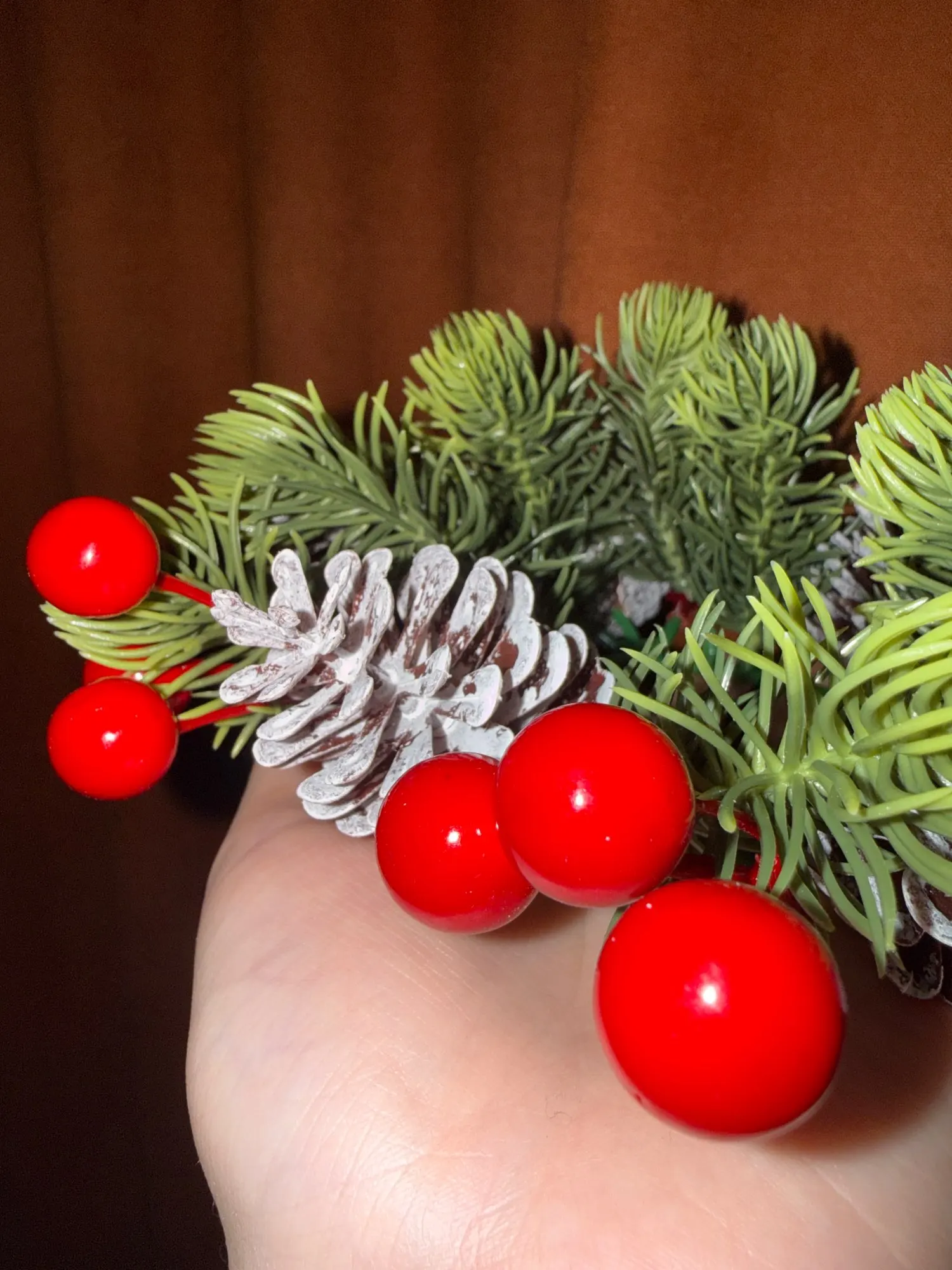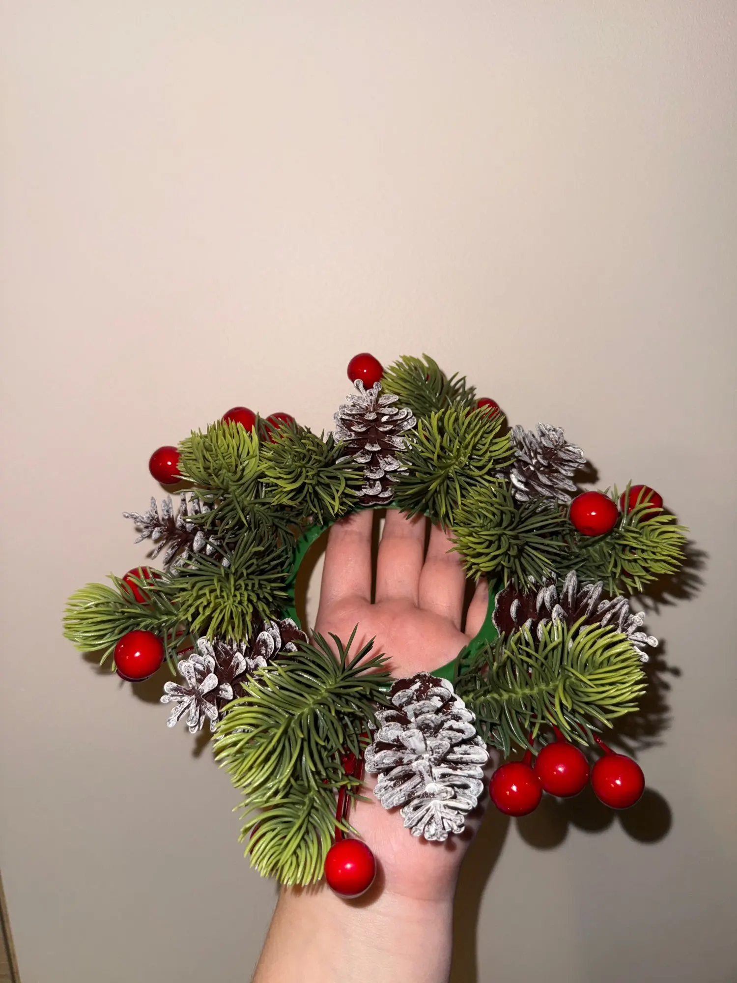 Christmas Candle Rings Artificial Pine Red Berry Flower Candle Wreath Holiday Candle Holder for Table Home Holiday Decor